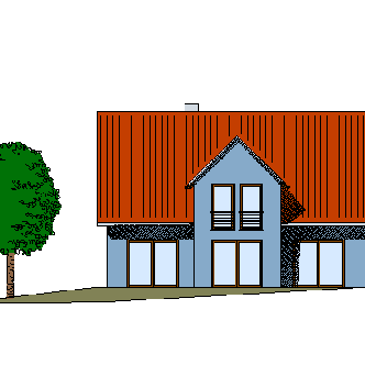 Auf einem ca. 1370 qm großem Grundstück in leichter Hanglage wurde ein Wohnhaus für eine fünfköpfige Familie mit zwei Bädern und einem Gästezimmer mit Duschbad im Untergeschoss erstellt.