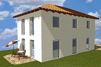 Auf einem nur 350 qm großem Grundstück wurde dieses kompakte Einfamilienhaus mit Walmdach gebaut.